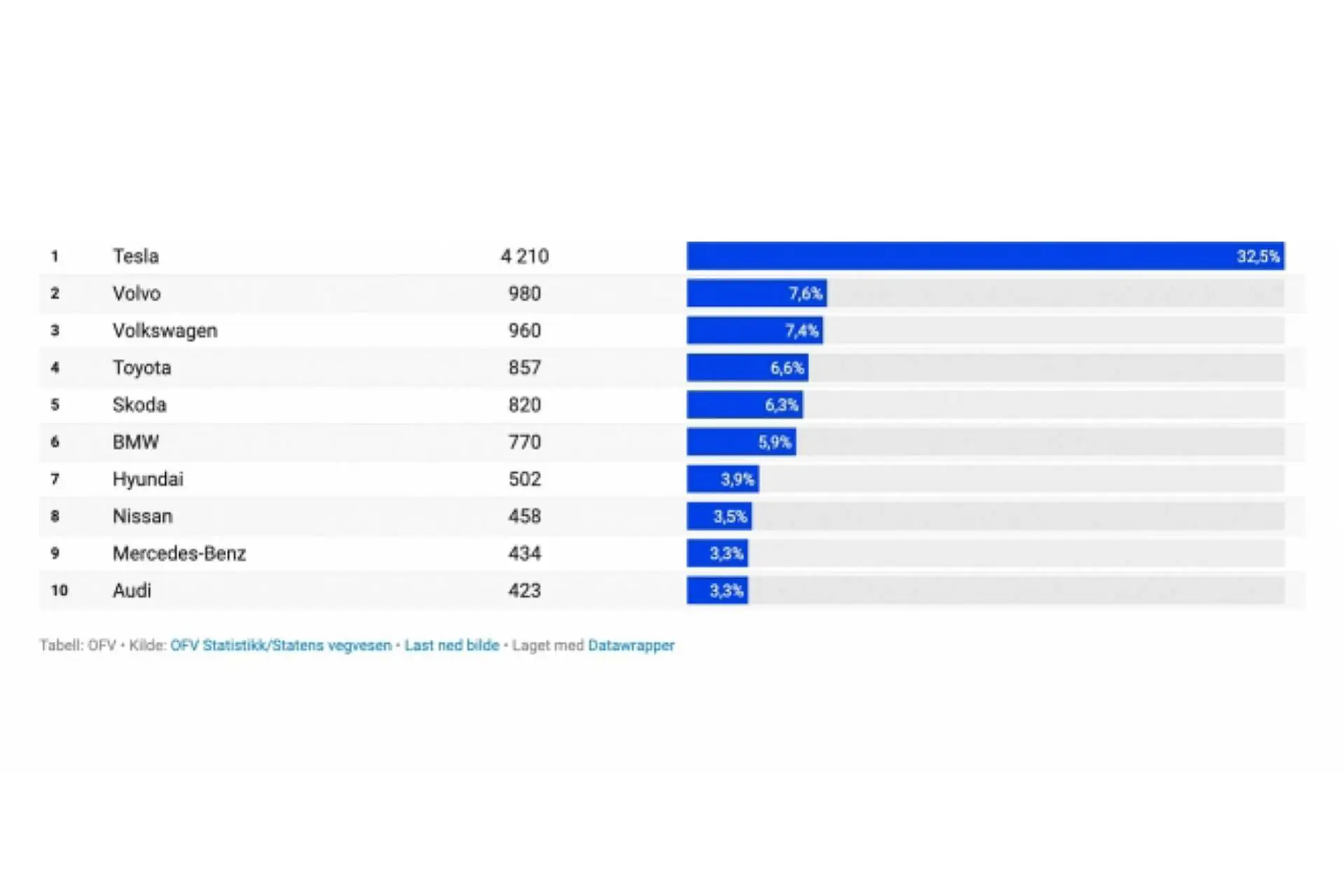 Les véhicules à hydrogène ont obtenu les résultats les plus décevants, avec aucune immatriculation enregistrée. En d’autres termes, la Norvège est sur le point d’atteindre l’objectif politique établi il y a quelques années, un objectif que beaucoup considéraient comme irréalisable. Le gouvernement avait proposé d’atteindre 100 % d’immatriculations de voitures électriques d’ici le 1er janvier 2025, soit un an avant le reste de l’Europe.